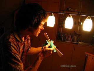 Als "Schleifblock" hatte ich gleich die Brücke selbst verwendet, sie hat ja gerade die richtige Breite. Auf ihre untere Seite hatte ich Schleifpapier mit "Spraymount" (einem nicht-permanenten Montageleim für Papier-Arbeiten im Büro) aufgeklebt. (ohne Foto).