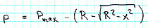 R = radio de la curvatura de la solera (11) (13) => => Ahora, a la fórmula (11) insertemos y de la fórmula (12): (16) => Con este p en función de x (y de R y de Pmax, ambas medidas conocidas) se puede calcular los puntos de, por ejemplo un taco de lijar. * * * * * * En fin, solamente se quedan tres fórmulas: